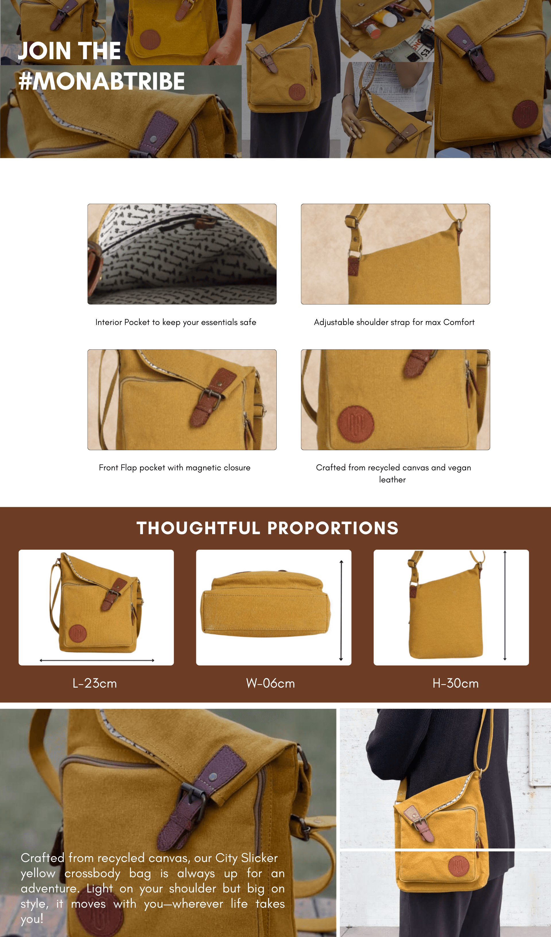 City Slicker Crossbody Sling bag For Men & Women - Mustard